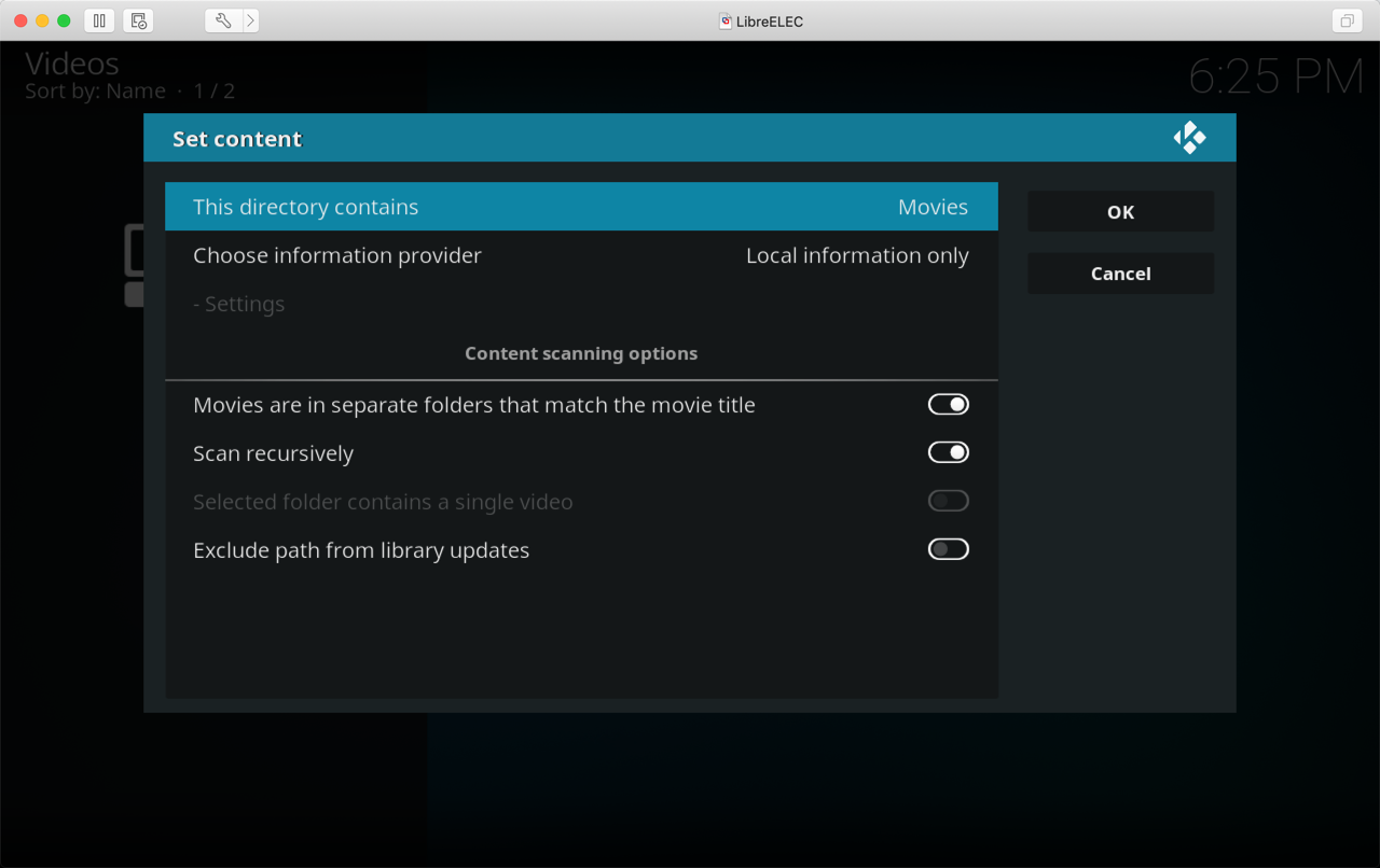 - Set the content type of the source in Kodi